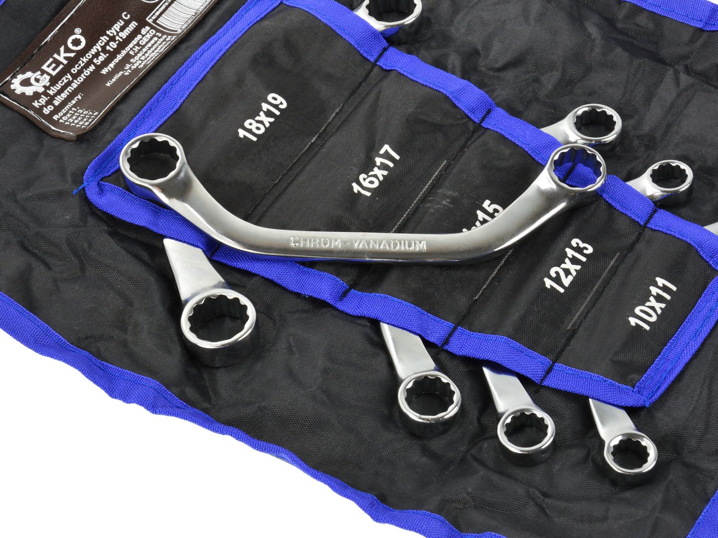 Sada očkových klíčů typu C 10-19 mm pro alternátory. Klíče jsou vyrobeny z vysoce kvalitní CrV oceli, která se vyznačuje zvýšenou odolností proti mechanickému poškození.